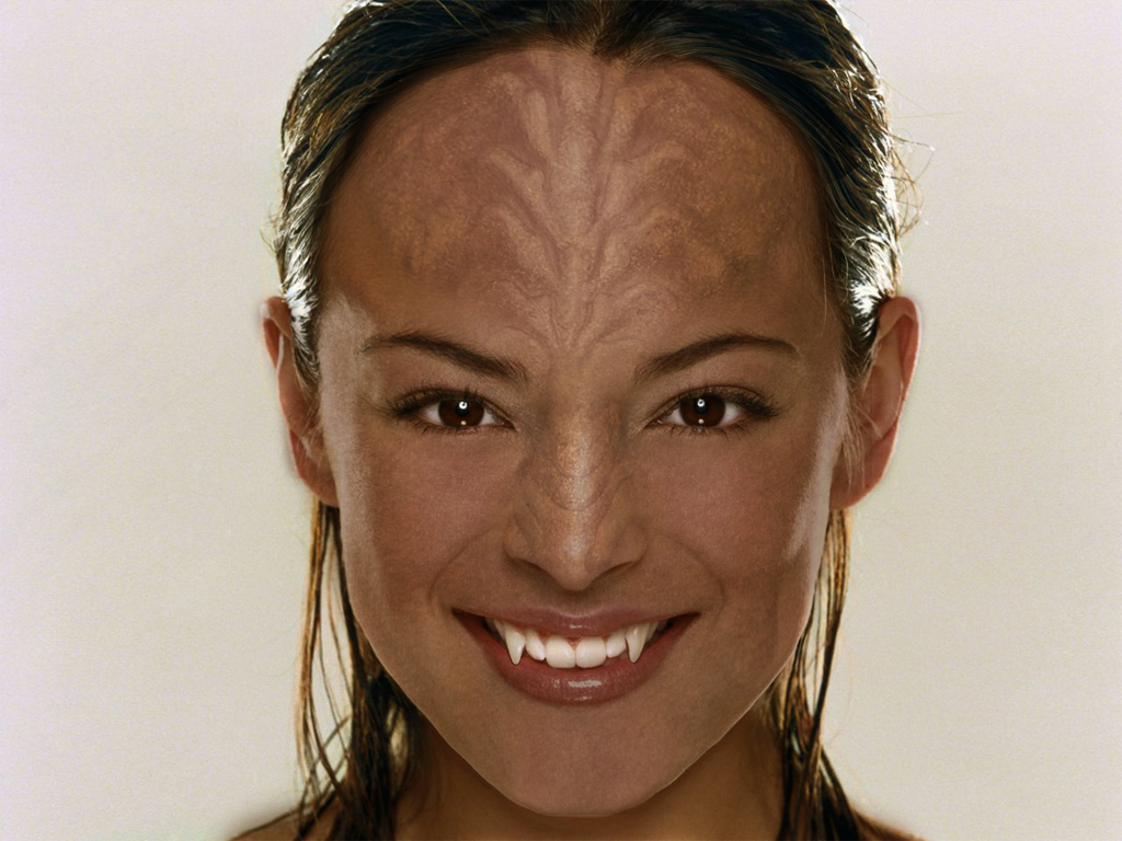 | Physical Description | Gilah Is not especially tall for a Klingon but retains a Typically Klingon powerful athletic build with wide shoulders, thick muscular limbs and prominent curves. Her skin is quite light on the Klingon spectrum, being as close to 'white' as a Klingon can really be and she has taken a few steps to integrate her appearance to be more palatable to other Federation citizens, especially for her patients. As a result had teeth are clean, white and not sharpened, remaining largely flat and fairly human-looking save for two canines on her upper jaw which are prominent even for a Klingon and tend to peak out from under her lip when she talks or smiles. As a further result of her extensive dental work and many years living in Federation her pronunciation is rather more precise and less phlegmy than many Klingons, however she does retain a very Klingon tone and manner of expression. Continuing the theme of adapting to her Federation surroundings Gilah is often to be seen with perfectly manicured hands and her long dark chocolate brown hair which is naturally wavy is usually curled and is tied back at the base of her neck when she is on duty. Gilah eschews typical Klingon dress, never wearing anything armoured and instead is most commonly seen wearing dark leggings, smart black or brown boots, a vest and one of an assortment of leather jackets. She has also been known to wear dresses for black-tie events and is regularly seen in a sports-bra, leggings and trainers for her main hobby of designing and conquering assault courses which show off the ridges on her back. Gilah has a powerful presence in a room and a commanding stance whether moving or still. The ridges on her forehead are a succession of five chevrons pointing downwards towards her nose-ridges. Her dark brown eyes are keen and often brought out with a little select make up, usually mascara and unlike most Klingons has well shaped and maintained eyebrows. |